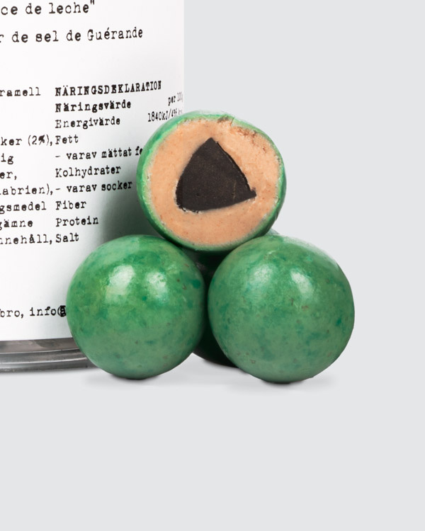 Djup och fyllig saltlakrits omsluten av mjuk dulce de leche-choklad, toppad med karamelliserad rosmarin och fleur de sel de Guérande.