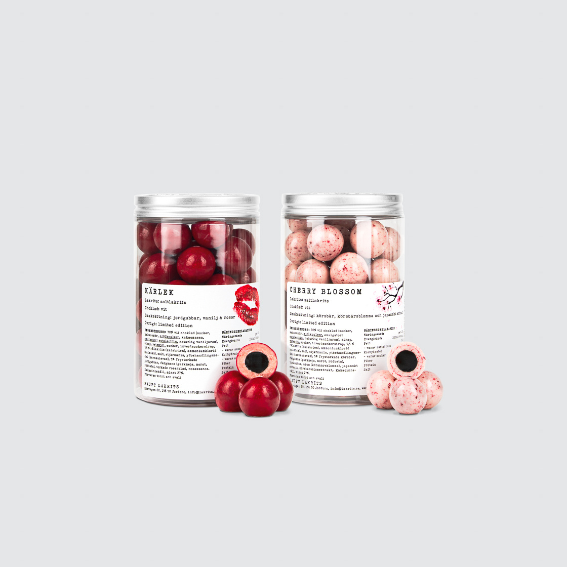 Kärlek (250 g) – långkokt saltlakrits möter vit choklad, jordgubbar, vanilj och rosor. Sött, salt och fullständigt oemotståndligt. En flirt som fastnar.
